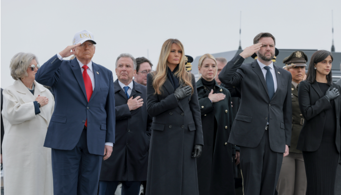 President Donald Trump, First Lady Melania Trump, and Vice President JD Vance joined senior military leaders as the United States received the remains of six Army Reserve soldiers killed in Kuwait.