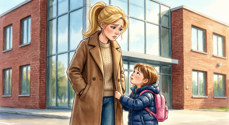 À l’entrée de l’école, Avery ne s’est pas enfuie pour rejoindre ses amis. Au lieu de cela, elle a agrippé la manche de mon manteau avec ses deux mains, serrant si fort que cela m’a surprise.
