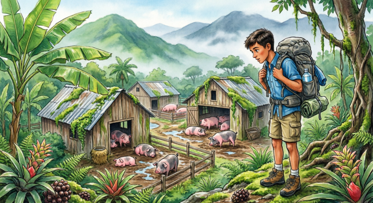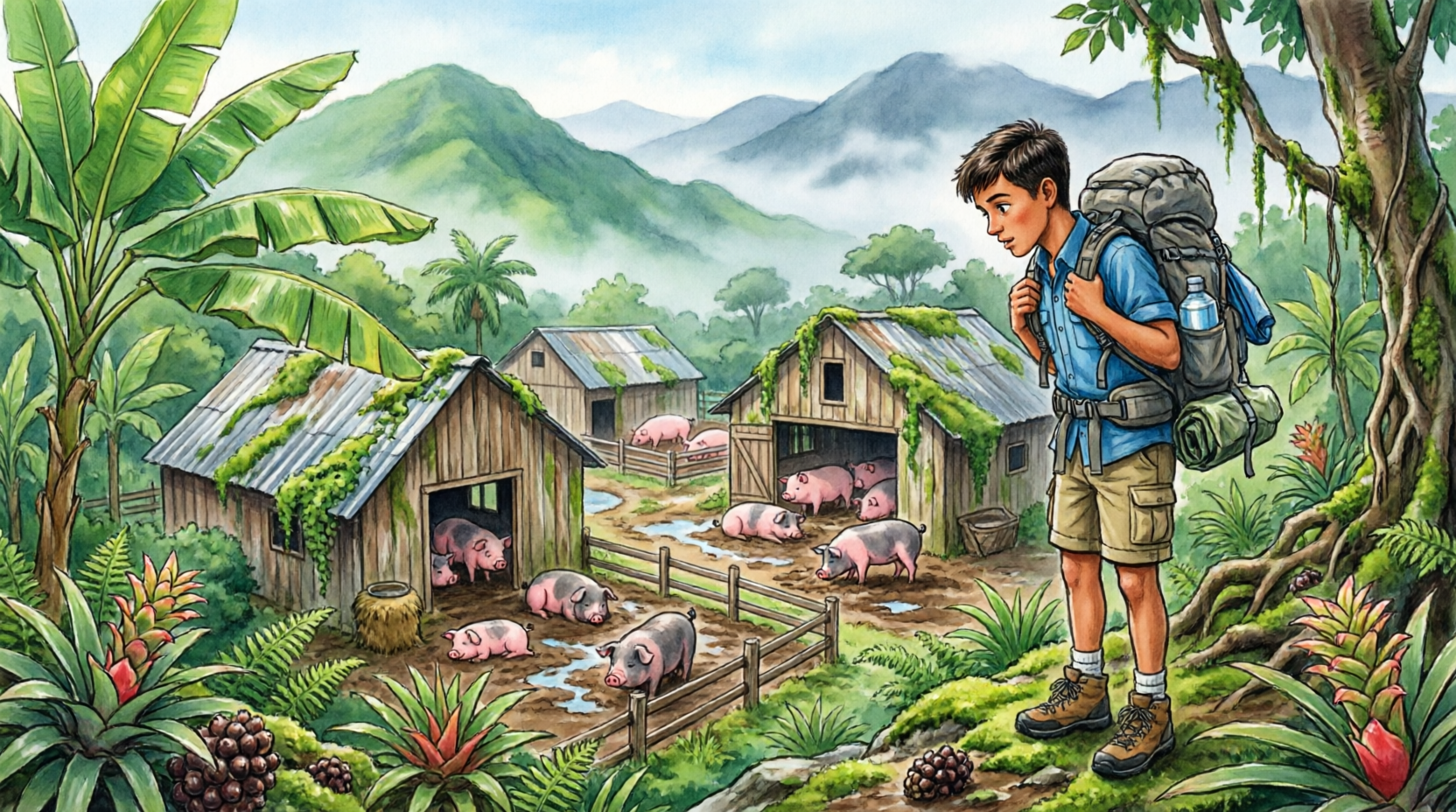 The sound of pigs rooting in the damp earth filled the mountain air. It was a simple sound… but to him it meant something enormous.