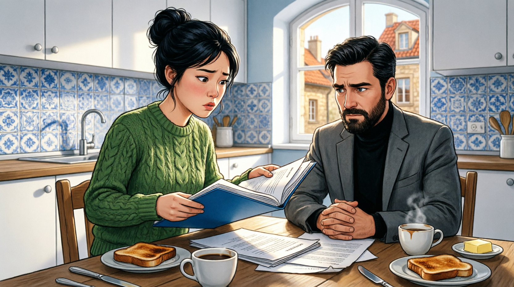 He was reading medical news on his phone, as usual. I placed the blue folder on the table beside the toaster.