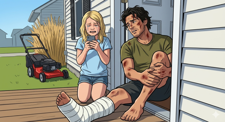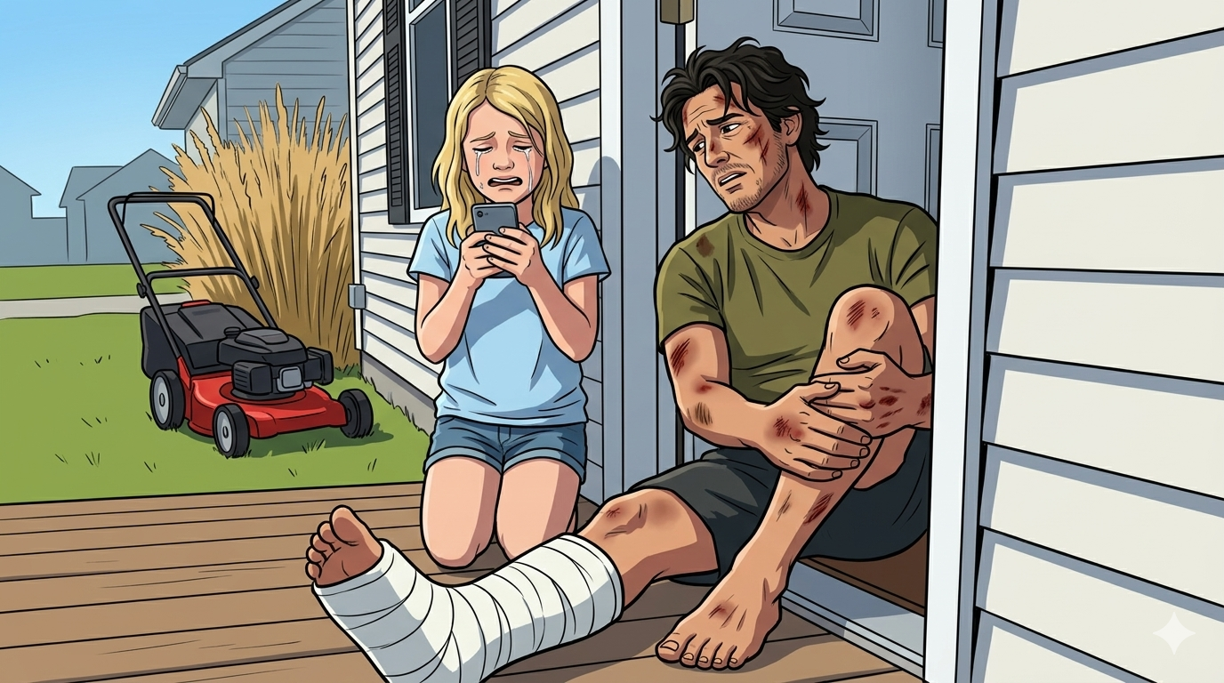 By mid-morning, I was in the backyard, pushing the mower through thick, overgrown grass. Sweat soaked through my shirt, sun beating down on my neck.