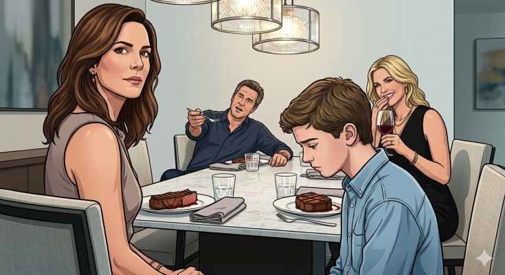 The first time I realized how easy it was for someone to cut a child with words, it happened over dinner, in my brother’s house, under warm pendant lights that made everything look softer than it really was. The table was set the way Chelsea always set it—linen napkins folded into neat triangles, water glasses lined up like soldiers, a centerpiece that smelled faintly like rosemary and something expensive she couldn’t pronounce. Aaron had grilled steaks on the back patio, thick and red in the middle the way he liked them, and he’d served them like he was hosting a celebration instead of a family meal held together by obligation and habit.