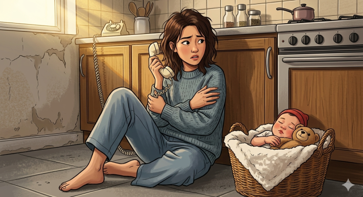 She didn’t stare at the dishes in the sink. She didn’t look too long at the stain on the ceiling. She looked at Noah’s red little hands and said, “Poor buddy’s freezing.”