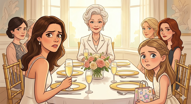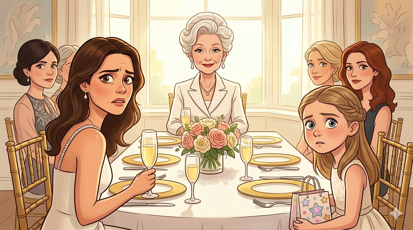 My daughter’s body went still. Her hands tightened around her gift bag. I saw her swallow, saw her eyes widen slightly like she wasn’t sure she’d heard correctly.