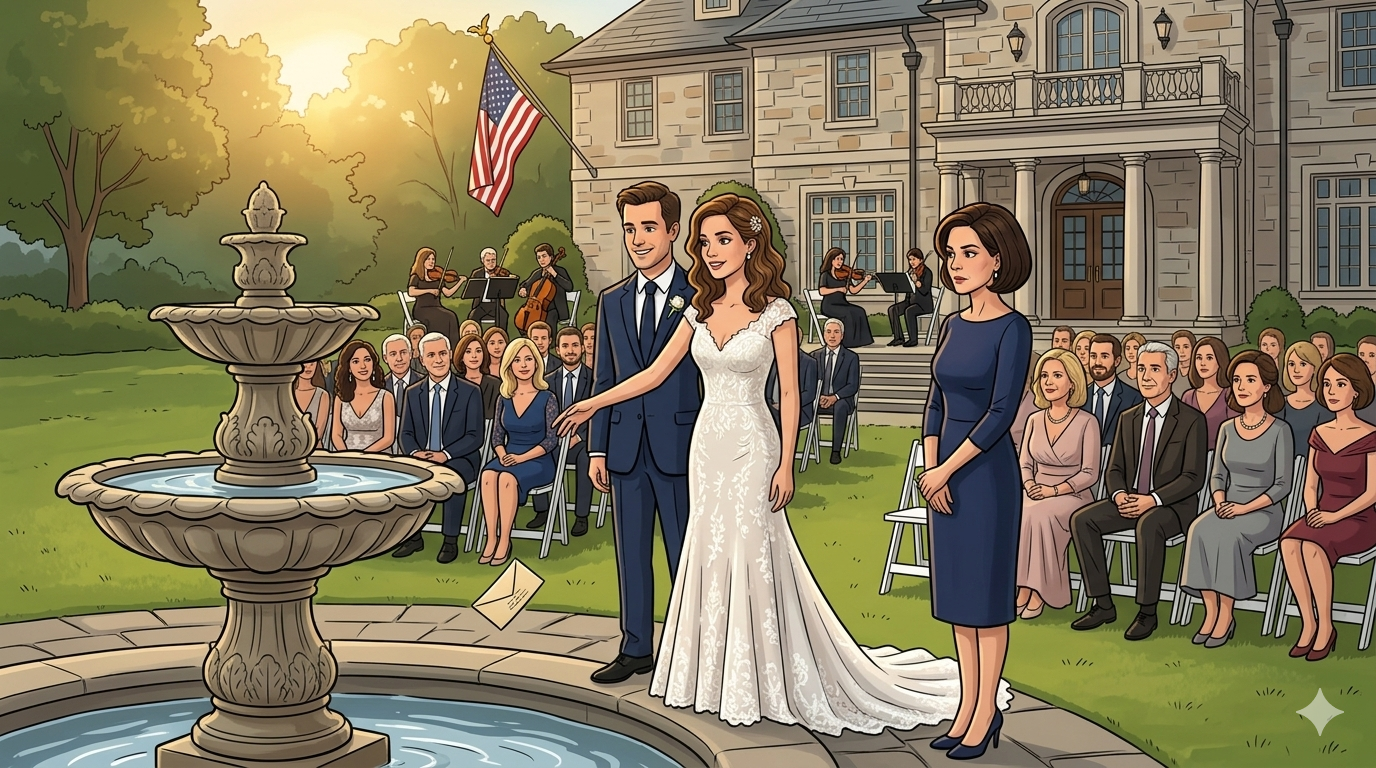 The fountain at the Sterling estate held the late-afternoon light the way only old money can, as if the sun itself had been invited in, seated, and instructed to flatter every surface it touched. Water lifted in clean silver arcs and fell back into a shallow basin of imported stone while waiters in white jackets drifted between tables with trays of champagne. Beyond the fountain, the lawn rolled away in a careful green sheet toward a line of old oaks, and under those trees two hundred guests moved in slow, polished currents, laughing, clinking glasses, leaning toward one another with the easy confidence of people who had never had to count the price of anything before saying yes to it.