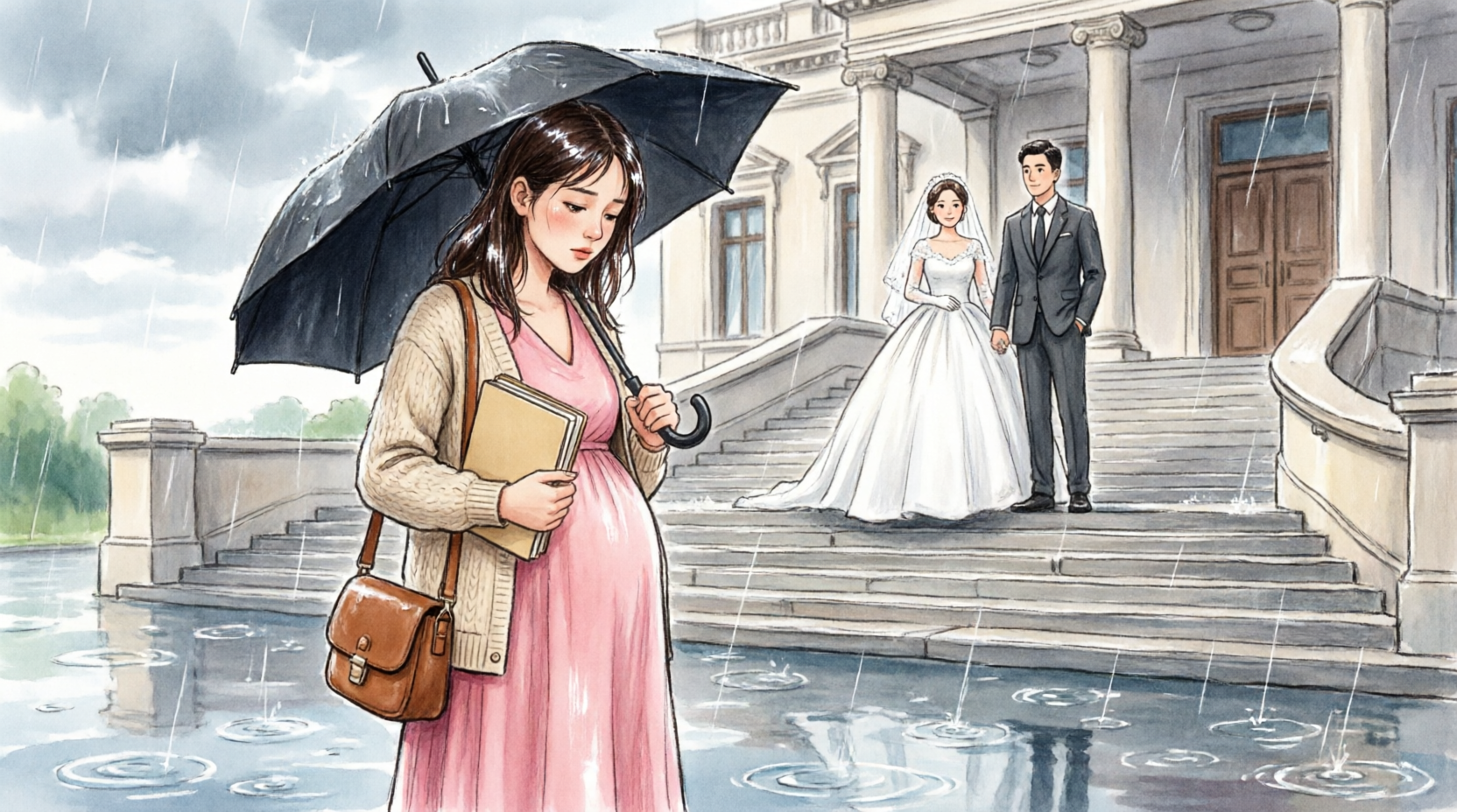 Beside him stood Ashley, wearing an elegant dress and heels that clicked against the wet pavement with calculated confidence.