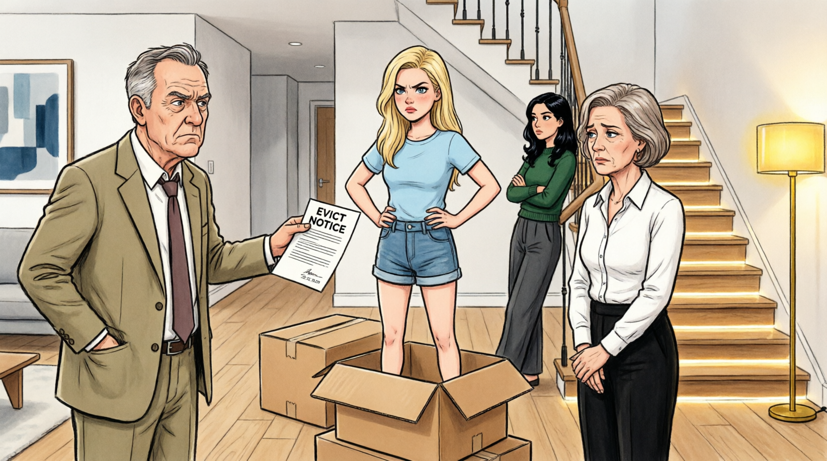My mother spoke first, her voice sharp with irritation as she stared at the lawyer. “What is she doing here,” she demanded while trying to maintain composure in front of the movers and neighbors.