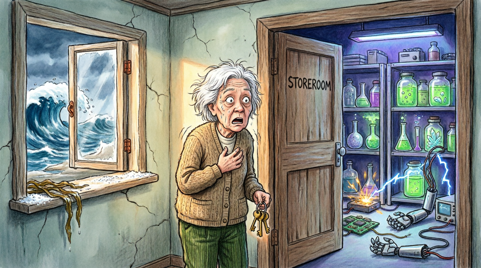 Shelves filled with samples. Equipment still running. Screens blinking quietly. The entire space humming with life that had nothing to do with warmth or family.