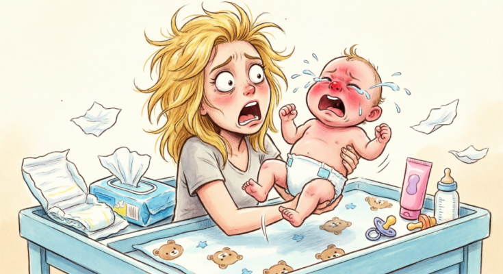 I laid Lily gently on the padded surface of the changing table, keeping one hand resting lightly on her stomach so she would feel the reassuring pressure of someone close.