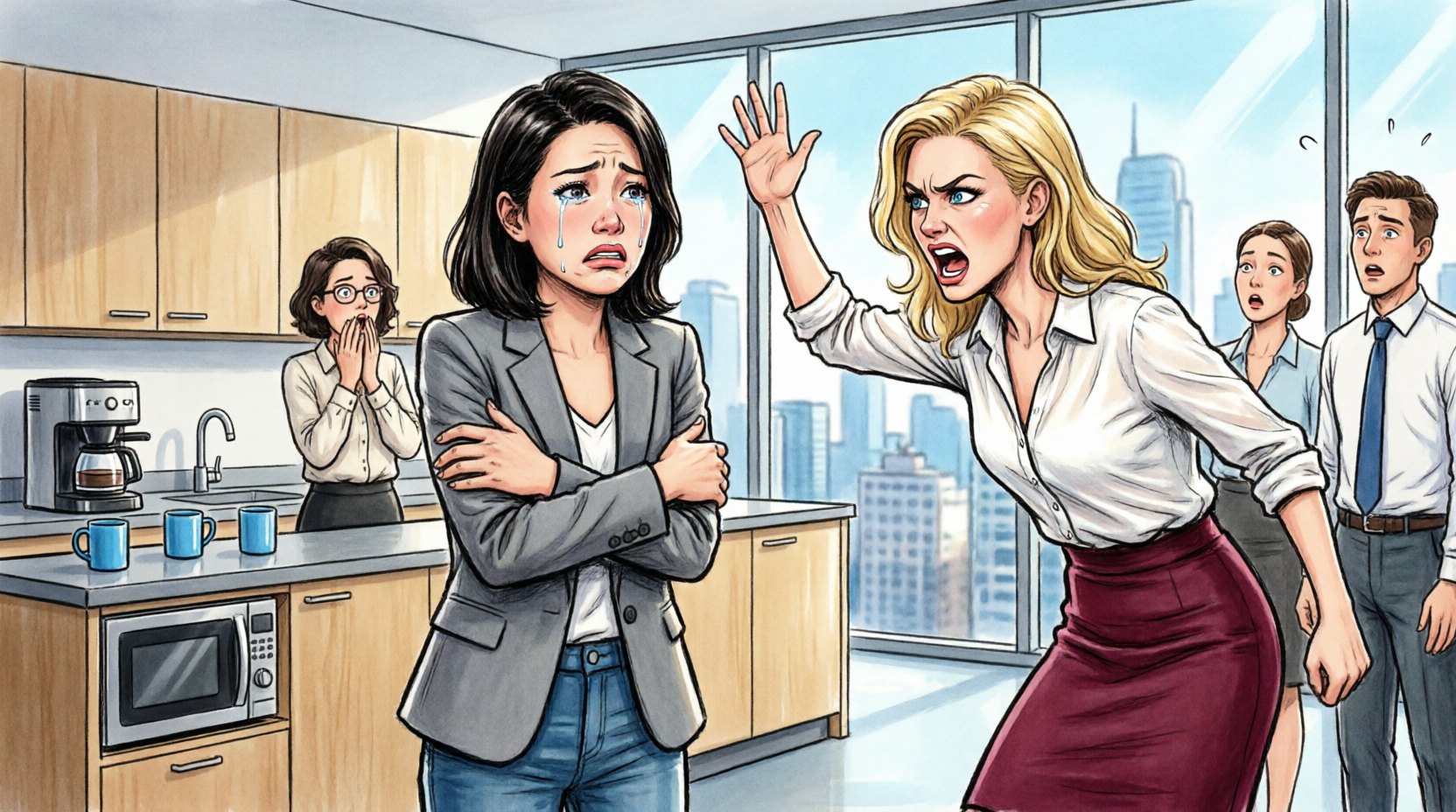 She turned on Emily. “And you—sneaking in here pretending to be some temp just to spy? What kind of woman does that?”