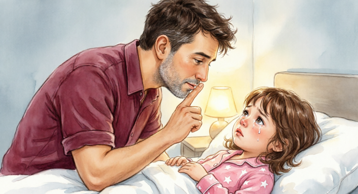 I turned toward the bedroom and saw my daughter, Sophie, half-hidden behind the door, like she thought someone might pull her back at any second. Her shoulders were tight. Her eyes fixed on the floor. She looked small in a way no child ever should.