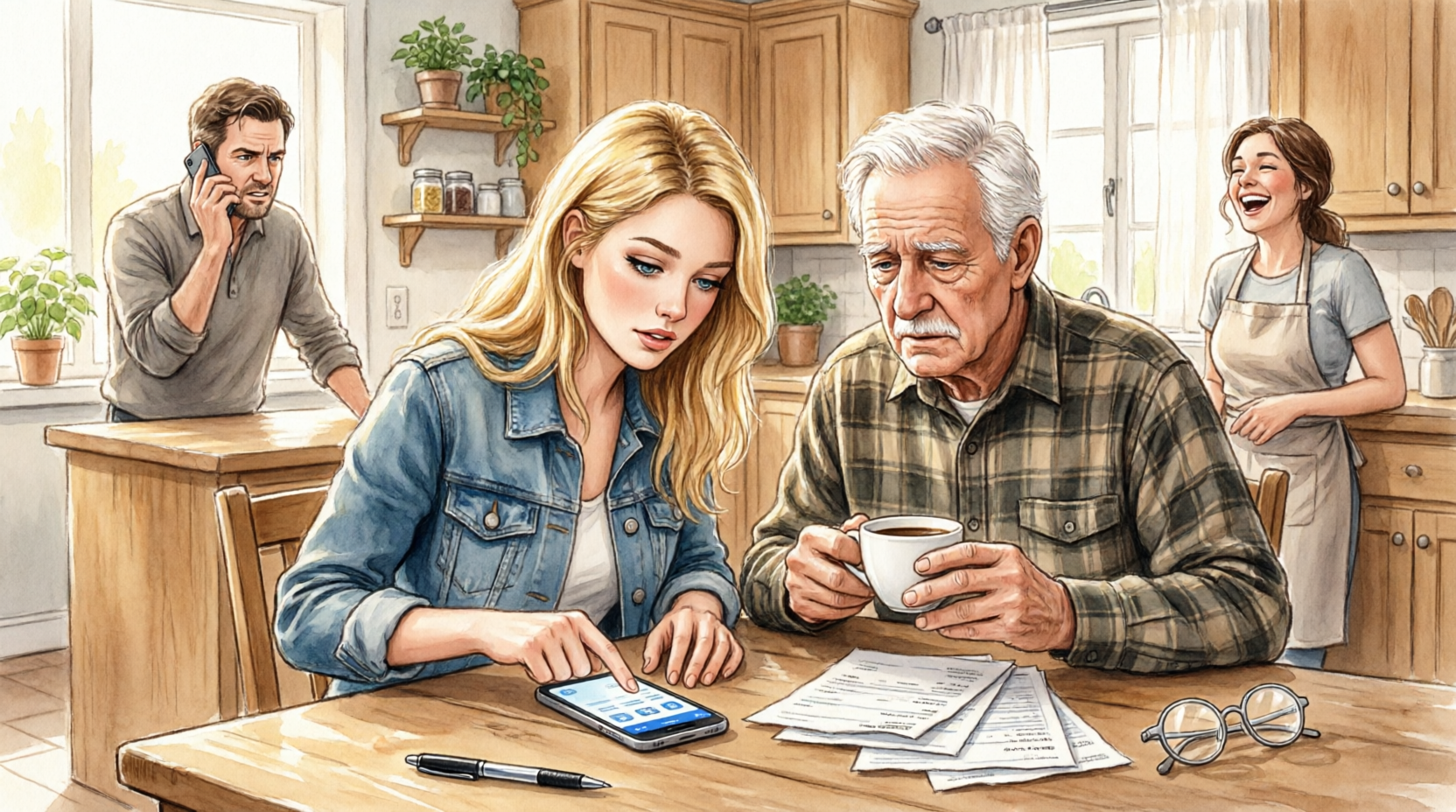 For two full seconds, I could not breathe. I did not cry, did not scream, did not even answer. I hit mute and looked across my kitchen table, where my grandfather sat very much alive in his old red-and-black flannel robe, one narrow ankle crossed over the other, both hands cupped around a white ceramic mug. Steam from his coffee drifted up and briefly blurred his face, and when it cleared, what I saw there was worse than shock. He looked tired. Not frightened, not confused, just tired, like a man watching a bridge collapse exactly where he had warned everyone it would.