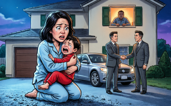 Sarah’s eyes snap open to her husband’s hand gripping her shoulder, not gently but with urgency, with purpose. He’s already dressed. Already awake. Already moving like someone who’s been waiting …